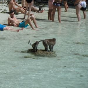 ピピ島&カイ島 で猿がいっぱいいる島を、みました。ガイドさんが餌付けしているので、猿が私たちの舟のところまで餌をもらいにきた~かわいかった。