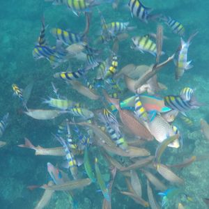 主人が海が好きなので私はお付き合い、今回雨あがりということで透明度バツグンとまではいかなかったのですが、深い海でボートから飛び込みいろいろな魚をみることが出来て満足しました。