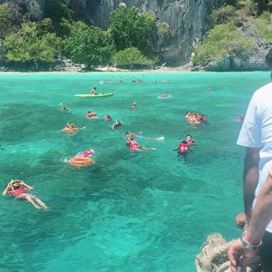岩の上から海を見渡せる島、スノーケルポイント×2、10分くらいのお散歩コースのある島。海も浜もきれいです…が、とにかく人が多い…女の子達の自撮り撮影会になってます(笑)