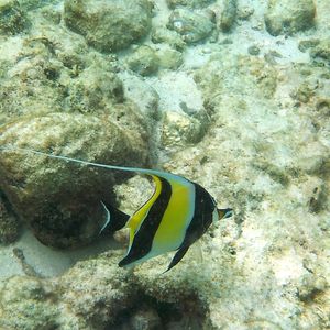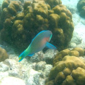 シュノーケリング時に餌を沢山撒いてくださり、何十匹というカラフルな魚に囲まれて良い経験が出来ました。