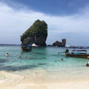 日本語のできるタイ人ガイドさんと20人くらいの日本人のみのスピードボートで、片道1時間かけてピピ島を訪れました。フォトジェニックな景色、海の透明さに感動!船上から猿にエサをやったり、ピピ島のホテルで種類は少ないけど味は満足のランチをとり、映画ザ・ビーチで見た景色の中を散歩したり、そこから10分の場所でシュノーケリングをしたりと、十分な内容で楽しめました!波の状況でシュノーケリング回数は当日は1回のみになってしまいましたが、きれいな魚が見られて嬉しかったです!フィンのレンタルに1人200バーツかかるので、持参されてる方もいました。全体として満足で、お勧めします!
