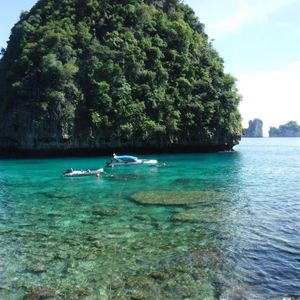 とにかく盛りだくさんのアイランドホッピングで,「○○に行った!」という体験を増やしたい人にはぴったりではないでしょうか。ガイドさん,ボートのスタッフさんがとてもフレンドリーで,こまめに色々なことを丁寧に教えて下さいました。おやつのパイナップルクッキーやジュースもたっぷりいただきました。一番シュノーケリングでよかったのはバンブー島で,透明度が一番高くて,お魚もたくさん見ることが出来ました。反面,シュノーケリングをたっぷり味わいたい人には,どの島も短時間なために,若干もの足りないかも知れません。最初に連れて行ってもらったカイ島は,行かなくてもよいぐらいです。マヤベイは,景色としては切り立った岩の島に囲まれ,フォトスポットなのですが,海自体はイマイチです。でも,ビーチの反対側の展望台に案内していただき,岩場なので,とってもきれいな海を見ることが出来ました。深いところでのシュノーケリングは,エサにたくさん魚が集まってきて,圧巻でした。