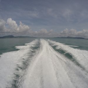 雨季にも関わらず天候には恵まれたものの、波が高くデッキの人達は風に曝され、波しぶきをかぶり、大変な思いをされていたようですが、プレミアムルーム内のそのまたプレミアムシートでの往復はコーヒーを飲み、軽食を食べながらと、私たちにとってはとても快適でした。但し、プレミアムルームの利用客は私たち以外は中国の方で、マナーなどで気になる点もありましたが、船内スタッフが気遣ってくれてとても良くしていただきましたので、この点については「+-0」というとこでしょうか。また今回は英語ガイドでのツアー参加でしたが、英語が苦手な私でも聞き取りやすく話していただけたので、不便なく楽しめました。また、とても感動的だったのが、当日こちらのツアーに参加したのがたまたま私たち夫婦二人だけで、大型フェリーに横付けされるチャーターボートは貸切り状態。まさにプライベートボートに乗船した気分でピピ島の島々をめぐり、綺麗な海を満喫しました。ひとつ残念なことに、この日は波が高くマヤベイには上陸できませんでしたが、また機会があれば是非利用したいと思います。料金は少し高いかもしれませんが、快適なピピ島めぐりをしたい方にはお勧めです。