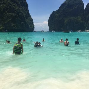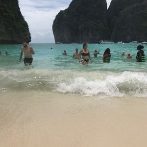 マヤベイビーチの白砂とエメラルドグリーンの海がとても綺麗でした!各島々巡りましたが、こちらがいちばんのお気に入りです。雨季だったためか波が強かったですが、海にも入れますし満足です(^^)人と船はとても多いですが…