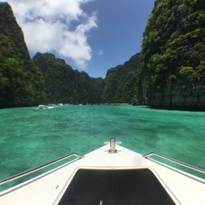 全て英語でのガイドとのことで若干の不安はありましたが、スタッフの皆様はとても気さくで面白く、おもてなしをしてくださりました。早朝スタートのため綺麗な日の出を見ることができましたし、人気のマヤビーチも人が少なく、とても得をした気分になりました。シュノーケリングやラグーンで泳ぐこともできますが、ツアーに参加された方の中には船の中に留まる方もいて、アクティビティへの参加が強制されない雰囲気も、とても心地よかったと思います。ツアーに参加しなければこんなにたくさんの島を回ることはできないと思いますので、参加してとてもよかったです!