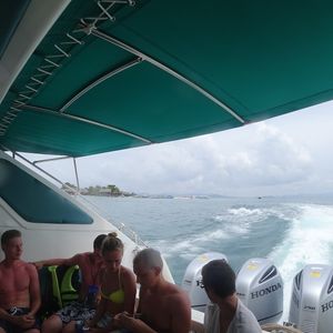 8æã¯éšæã®ãããæŽããŠãããšããŠã颚ãããã°ãæ³¢ã¯ïŒM~4Mè¿ãããããã®æ¥ã¯æŽããŠãããïŒMãã£ããçžåœæºããã®ã§ä¹ãç©é ããæãäººã¯æ¢ããæ¹ããããå°ããªåäŸã¯ãããæ¹ããããäžãäžåããããããä»ã®å®¢ã«è¿·æãæãããåž°ãããæ°æã¡ã«ãããªããªããããŒãå ã¯äž¡åŽã«ãã³ãã·ãŒãããããé£å士ã¯ããªãå¯çããã®ã§ãå¯èœãªéããæ¥æ¬äººã®éã«åº§ã£ãæ¹ããäºãæ°ãŸãããªãã«ãããããŒãã¯åºæ¬åè¶³çŠæ¢ã®ãããªã®ã§ãããŒãå ã¯çŽ è¶³ã§éããããšã«ãªããä¹ããšãã«ãã«ãŽã«å ¥ãããèªåã§ç®¡çãããéžã¹ãã®ã§ãèªåã§ç®¡çããæ¹ãéžã¶ã¹ããã«ãŽã«å ¥ãããšéãããšããŸã§è¿ã£ãŠããªãã®ã§ãäžéžããå³¶ã§ãçŽ è¶³ã§éããããšã«ãªããããŒãå ã«ãã€ã¬ããããçŽ è¶³ã§å ¥ãåæ°ã¯ãªãã£ãã®ã§ãä¹ãåã«å¿ ããã€ã¬ã¯è¡ã£ãŠãããæ¹ããããæ¥æ¬èªã¬ã€ãã¯æ¥æ¬äººã§ã¯ãªãã®ã§ãæ¥æ¬äººãè©±ãæ¥æ¬èªã«ã¯çšé ãçèšã®æ¥æ¬èªããšããã©ããäœãèšã£ãŠããã®ãåãããªããæ¥æ¬èªã¬ã€ãã¯ããã¢ãŒåå è ã«æ¥æ¬äººã10å以äžããªããšããŒãã«ã¯ä¹ããªãã®ã§ã枯ã§èª¬æãããŠãããŸããä»åã¯æ¥æ¬äºº9人ã ã£ããããæ¥æ¬äºº10人ããªãã~ã ãããä¹ããªãïŒã§ãã倧äžå€«ãè±èªã®ã¬ã€ããä¹ãã~ããšãåãæ±ºãããªïŒãšçªã£èŸŒã¿ãããªã説æã ã£ããä»ã«ããæ³¢ã仿¥ã¯é«ãã~ãããïŒãããŒã«è¢ïŒããŒããµã³ãã«å ¥ãããããšãã²ãè¢ã«äœ¿ãããšå®éã©ããªç¶æ³ã§ãããåããããã®è¢ã¯æã¡ç¶ããã®ãïŒã€ã¡ãŒãžããããªã説æã10åãããç¶ããããŒãã®å é ã¯ãæ³¢ã§è·³ããã®ã§é¿ããããã«äºåã«èšããããããã®æ¥æ¬èªã¬ã€ããåºçºåã«ããŒãå ã§ãæ¥æ¬äººãéããŠèª¬æãããã®ã§ãçµå±ãã®ã¬ã€ããããŒãã®ã©ãã§èª¬æããããã§åº§åžã決ãŸã£ãŠããŸããåŸãããä»ã®åœã®äººãã¯âãšå ¥ã£ãŠããŠãåã«è©°ããçãªããšãèšãããå é è¿ãã«è¿œãããããŠããŸãããšããããçµå±åŸãã§ã¯ãªãçãäžã«åº§ã£ããã§ããåŸãã¯åŸãã§ãä¹ãéãããéã¯ãåŸãããè¡ããããæµ·ã«å ¥ã£ãåŸã¯ã20人ãããã®ã³ã£ã¡ãã³ã¡ãã§ããžã£ãªãžã£ãªã®ç ãŸã¿ãã®äººãã¡ãéã£ãå Žæã«åº§ãç¶ããããšã«ãªããå é ãšåŸæ¹ã¯å±æ ¹ããªãã®ã§ãéšã ã£ããïŒïŒïŒïŒ æ¿¡ãããé転åžã®ãã°ãäžçªè¯ãã®ã§ã¯ãªãããšæããçãäžã®æºãã¯åŸããšããŸãå€ãããªããããŒãã®çãäžã«ã¯ãŒã©ãŒããã¯ã¹ãããã飲ã¿ç©ããšãããããæ°Žãã³ãŒã©ãå ¥ããªããŠãããŒãªãŒãå ¥ã£ããªã¬ã³ãžãžã¥ãŒã¹ïŒæãæ¥ã«ãŒãªãŒãžã¥ãŒã¹ã¯ãæè»ãæããŠããã¿äžããŠãããã®ããã£ããã»ã³ã¹ãçãïŒãå ¥ã£ãŠãããæ°Žã¯ãããããã«ã§ã¯ãªããé£è¡æ©ã§åºãŠãããããªããããã¿ã€ãã®æ°Žã ã£ãã®ã§ã飲ã¿ã«ããããããé©ãã»ã©ã¹ãããŒãåºããã«ããããå¥ããã«ãããããŒãã§ãããŠãã®ããšæãçšå¢ãããã¹ãããŒãåºããŠãããæ¥æ¬ã®é£²ã¿ç©ãåŠäœã«åªããŠããããšããã«ã«ãã£ãŒã·ã§ãã¯ãçµéšã§ãããæ®éã«é£²ã¿ãããªãæ°Žãããã¯èªåã§æã£ãŠããæ¹ããããããããªããããŒãå ã¯ãæ³¢ã§ã¯ãªãæ¿¡ãã人ãéãã®ã§ãã©ãã§ãæ¿¡ãããšæã£ãæ¹ããããäœèšãªãã®ã¯æã£ãŠè¡ããªãæ¹ãããã確å®ã«æ¿¡ããŠããŸããããå³¶ã§å³¶ã«äžéžããéã«æ°ãä»ããããšã¯ããããéåžžã«æ³¢ãé«ãã®ã§ãæ³¢æã¡éã«ç«ã£ãŠããã ãã§ããæ³¢ã«è¶³ããããããŠè»¢åããããšããã£ãããµã³ã°ã©ã¹ãããŠãããšãã®ãŸãŸæ³¢ã«ãããããŠã©ããã«è¡ã£ãŠããŸãã®ã§ãå®ããã®ã«ãããããµã³ã°ã©ã¹ã¹ãã©ãããä»ããæ¹ããããæ°äººã®æ¥æ¬äººããµã³ã°ã©ã¹ãç¡ããªã£ããšèšã£ãŠãããåæ§ã«ã«ã¡ã©ãå¿ ã鲿°Žä»¥å€ã¯æã£ãŠè¡ããªãæ¹ããããã³ã³ãã¯ãã«ã¡ã©ã¯çµ¶å¯Ÿã«ã¹ãã©ãããä»ããŠãªãããªãããã«æ°ãä»ããæ¹ããããæ³¢ã«ãããããããããå³¶ã®èгå ãã«ã¡ã©æ¢ãã§çµãããããŠãžã³ã°ïŒé²æ°Žã±ãŒã¹ïŒããããªããã±ãŒã¹ã«å ¥ããæ¹ããããããŒãã®ç ãããŠããŒç¶ãªã®ã§ã鲿°Žã«ã¡ã©ã§ãè³ãæã®æºã«å ¥ã£ãŠããŸãåãã®ã«äžèŠåŽã ã£ããè³ã®äžã«ãç ãå ¥ãã®ã§ãç¶¿æ£ããããšãããæµ·æ°Žã®æž©åºŠã¯ãçµæ§å·ããã£ãã®ã§ãå¯ãã«åŒ±ã人ã¯ãã©ãã·ã¥ã¬ãŒãïŒäžïŒãããªã³ã«ïŒäžïŒãçãŠãæ³³ãã æ¹ããããããããªããããŒãå ã¯çæ¿ããå Žæã¯ãªããããŸããŠããã€ã¬ã§çæ¿ããããããããªãã®ç¢ºçã§äŸ¿åšã«ããŒã«ã€ã³ã¯ã³ãããšæãã1æé30åãããããŒãã«ä¹ã£ãŠããã®ã§ãæããŠã倩åãå€ããã°ãäžæ°ã«æ°æž©ãäžãããããããããŒãã¯é¢šãåã£ãŠé²ãã®ã§ãæãããªã£ãŠããããšã¯ãŸããªããæåŸã«ããŒãã¹ã¿ããã«ãããããšèšããããã20THBã§ãããšæããæž¯ã«åž°ã£ãŠããŠããããçæ¿ããå Žæã¯ããã€ã¬ãžè¡ããšèšãããã ããªã®ã§ãæ¿¡ãããŸãŸã®ç¶æ ã§è»ã«ä¹ããšæã£ãæ¹ãããããŸããæ¥æ¬äººã®æèŠãšç°ãªã