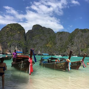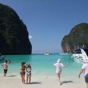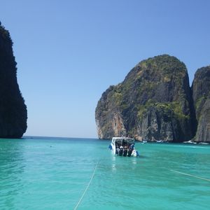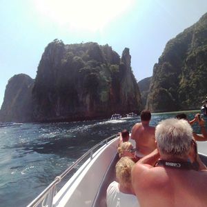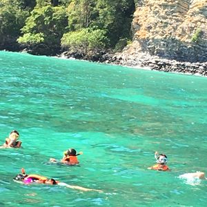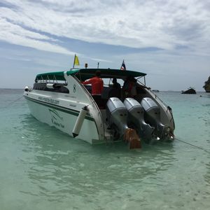 ピピ島まで時間がかかると口コミで見ていたのでスピードボートにしました。ボートには優先乗船で1番に乗りました。みんなが揃うまで待たされましたが日本語ガイドのおじさんとお話してました。酔い止めがあったら良いって聞いてたけど全然大丈夫でした。海の状態が良かったのかな(*^^*)ボートに乗る前に履物は回収されます。マリンシューズ持って行きましたが必要なかったです。皆さん1日裸足で過ごしました(笑)沖からの2回のシュノーケル。ボートから海へドボン!最高に綺麗でした!飲み物も必要ないです、わざわざミネラルウォーター持って行きましたがボートに沢山のミネラルウォーター・ジュース飲み放題でしたw。マヤベイは綺麗でしたが人がいっぱいでした。最後のカイ島では1時間位しかなかったのでシュノーケルはせずにチェアー