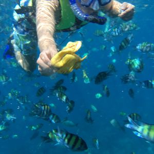 シューノーケルもカラフルな魚が多く、バナナの餌をくれるのでたくさんの魚が見れて楽しかったです!ガイドさんも日本語がすごく上手で良かったです。モンキービーチの猿がものすごく可愛くてもっといたかった…笑