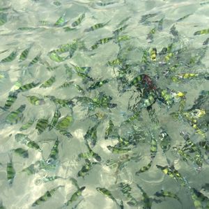 快晴ではなかったけど、それが日焼けを緩和して快適でした。餌をやるとどこから湧いてくるのかと思うほどの魚の群れ。時々突っつかれたりして面白い。ジェットボートの中でも島でも飲み物があり手ぶらで参加できるのは良かった。そして、日本語が喋れる元気でフレンドリーなスタッフの対応で最高に楽しみました。今度は家族全員で参加したい。