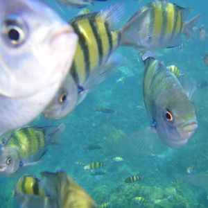 珊瑚の海でシュノーケリングがしたくて、申し込んだのですが、想像していたよりは魚の種類も数も少なくて、残念でした。私が思うに、シュノーケルをしているすぐ脇を、たくさんの大型ボートが入ったり出たり、ひかれそうになったり、これでは、きれいな海も濁って見えるのは当然ですよね?また、オンシーズンだったため、人の数も半端な区多く、あふれていました。コーラル島の方が静かで海も澄んでいたと思います。