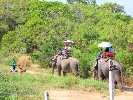 プーケット自体あまり観光するところがないせいか、参加してもしなくてもいいかなという感じでした。途中、象にも乗りますが、15分くらいで平坦なところを連なって歩くので、少し物足りないかもしれません。でも、日傘を貸してくれましたよ。途中フルーツマーケットによって、いろいろなフルーツの試食をしたりでき、それなりに楽しいツアーでした。
