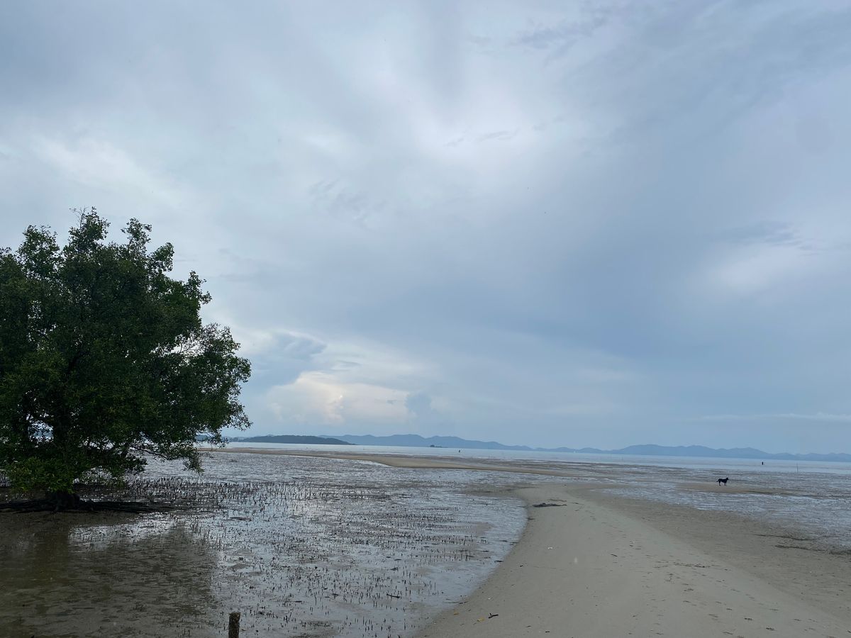 乗船場所は、クラビからとんでもなく遠方の乗船場所で、下船場所は、乗船場所に船が着けられないため、海の上で下ろされ、30㎝ほどの遠浅の海を300m近く歩いて、ビ-チに上がりました。
