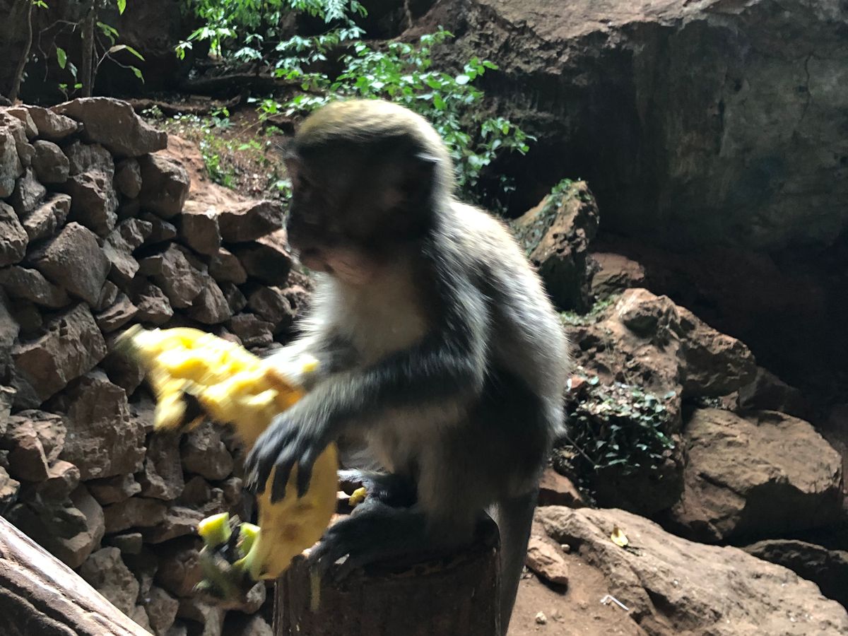 お寺と猿の見学。猿に餌(100バーツくらい)をあげたりできますが、たくさん持っていると、無理やり奪い取られます。うちは餌をあげる気もなかったので、餌を買わず、ただ見てるだけでした。