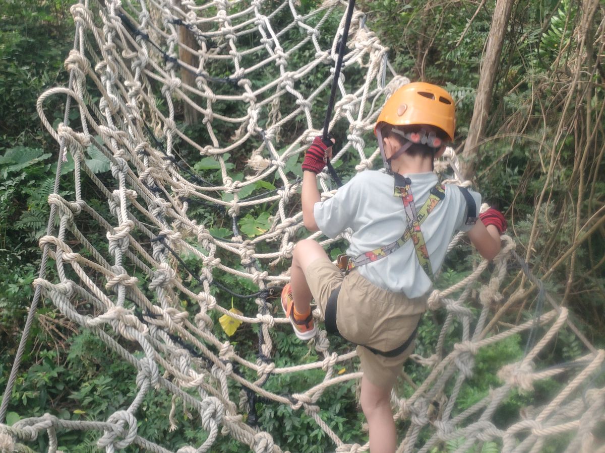 小3の息子は怖がりで不安がっていましたが、お兄さんが簡単な英単語で褒めてくれたり、息子の後ろで常にサポートしてくれたりと、おかげで子供たちは最後までテンションが高く、大満足の様子でした。特に楽しみにしていたターザンが多数あり、その他のアトラクションもあったので飽きることなく家族で参加できました。