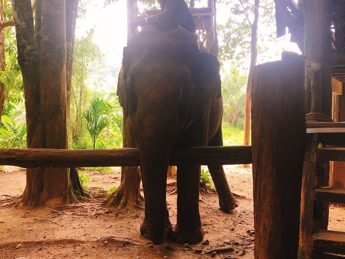 席の安全面に関しては象の背中に2人乗りのベンチがロープで固定されてるだけで、若干不安は残ります笑