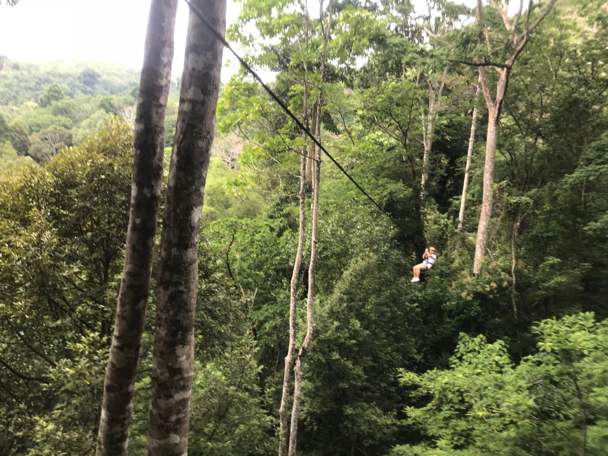お写真ではかなり高い木の上を飛んでいらっしゃいますね。最初は緊張してドキドキするかもしれませんが、何本も飛ぶうちにどんどん爽快な気分になってきます。えりこ様は笑いも絶えなかったようで、確かにストレス発散にはもってこいのアクティビティかもしれません!是非あの空中を飛ぶ開放感をみなさんにも味わっていただきたいですね。