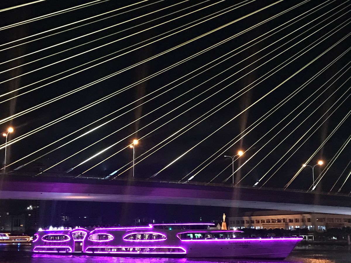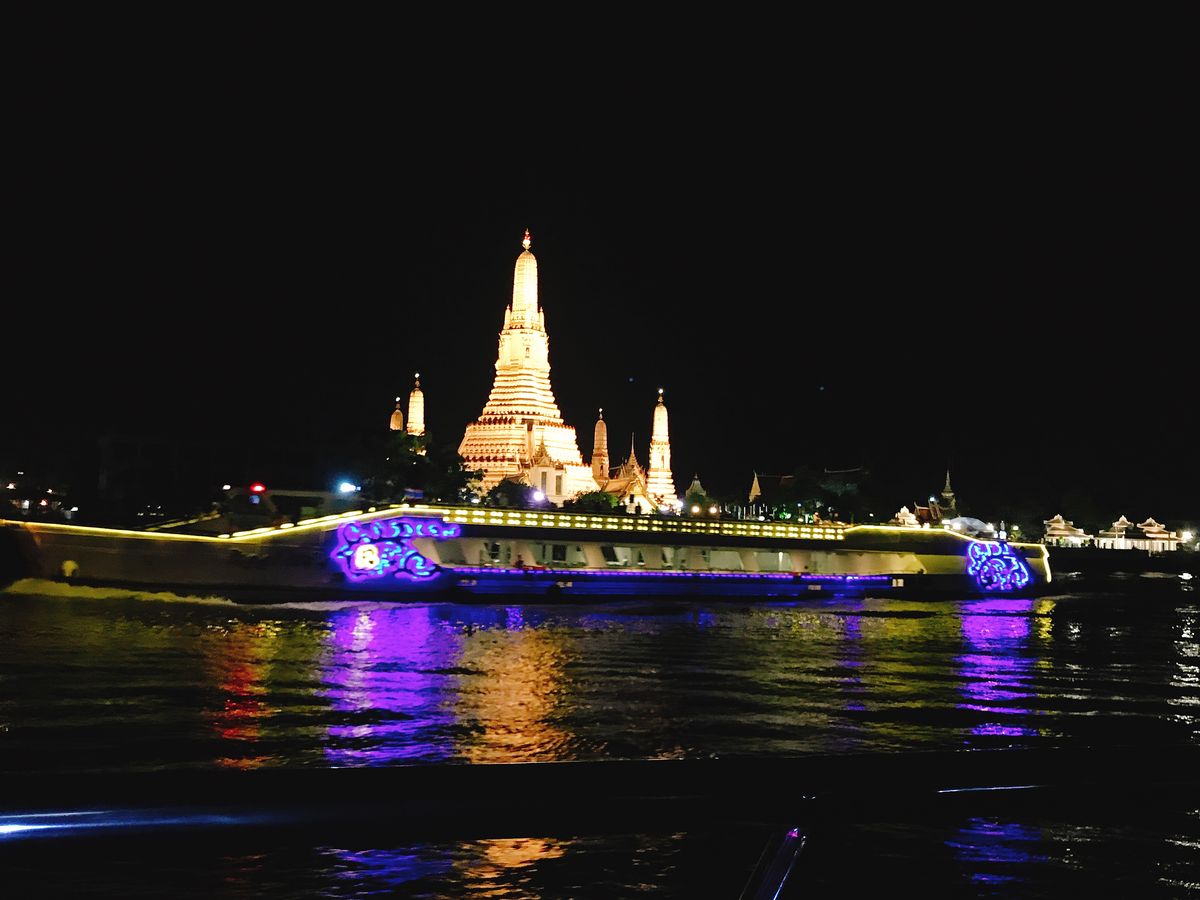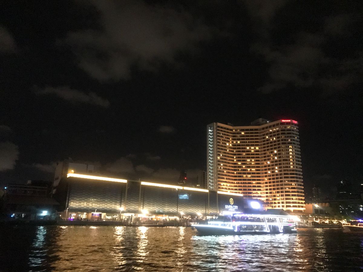 クルーズ前にホテルに戻りシャワーを浴びて着替えて待機。(少しおしゃれしていきましたが、意外とみんな普通の格好)ナイトクルーズは風も気持ち良く、夜景は最高でした。前日に暑い中王宮周辺を観光してたので、違った見方ができて良かったです。ごはんは普通のブュッフェで飲み物代が別です。ランチもディナーも飲み物代が別で買わないといけない雰囲気になるので、1人プラス500バーツくらいにはなることは頭にいれておいた方がいいです。乗る船によって、騒がしさが違うみたいですが、私のは静かでホテルのルーフトップバーがすごい混んでるのでこちらの方が優雅でした。