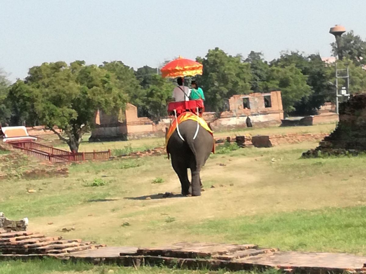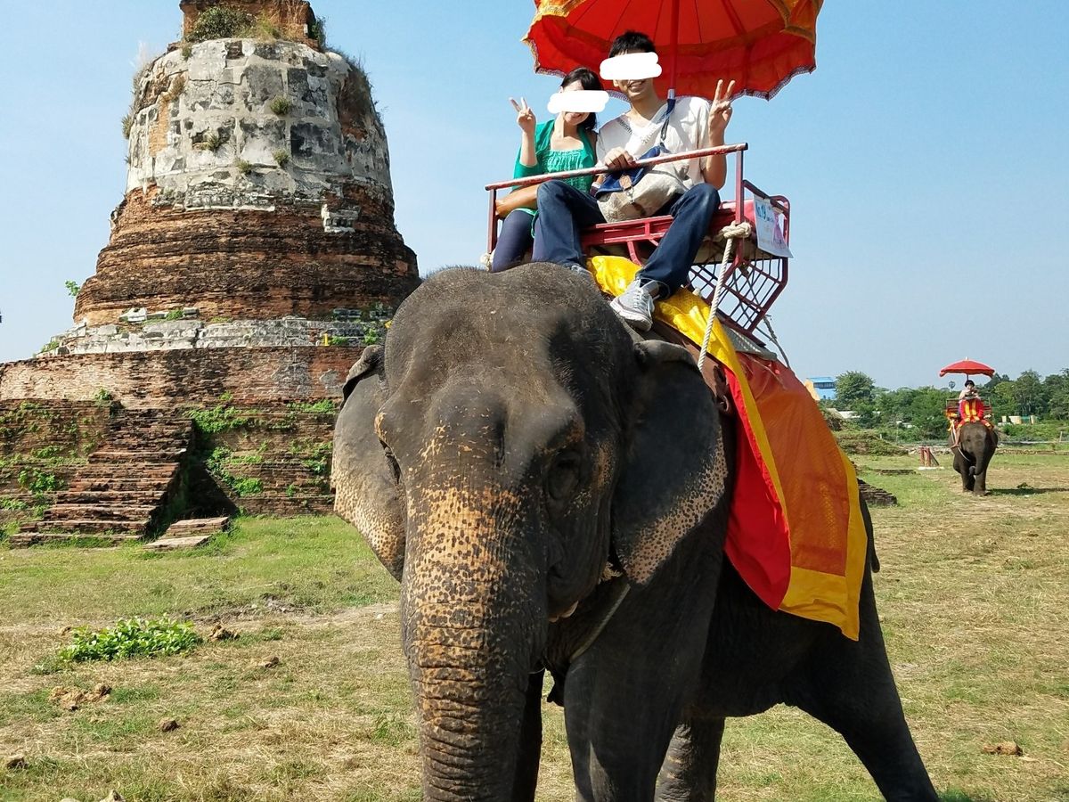 バンコクから90分ほどでアユタヤです。主な遺跡を一通り見て回ります。参加検討時は、ツアーだと一つ一つ時間をかけて見れないのでは心配していましたが、それぞれ20分程度自時間を設けてあり、安心して観光できました。また、1月の参加でしたが直射日光のもと結構暑かったので、そのぐらいの時間でちょうど良かったです。象乗りは10分程度。象はかなり揺れますが、非常に良い経験でした。ちょっと試してみたいという方には、丁度いい時間だと思います。