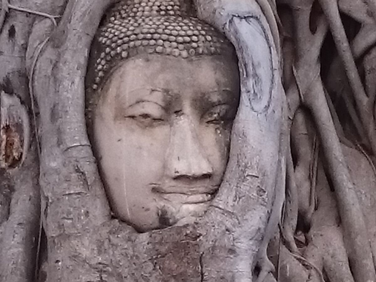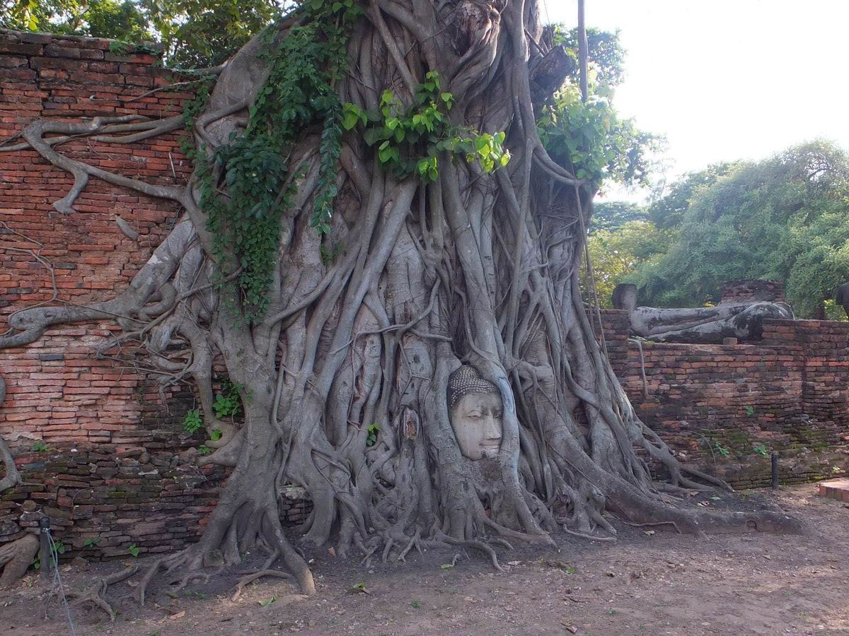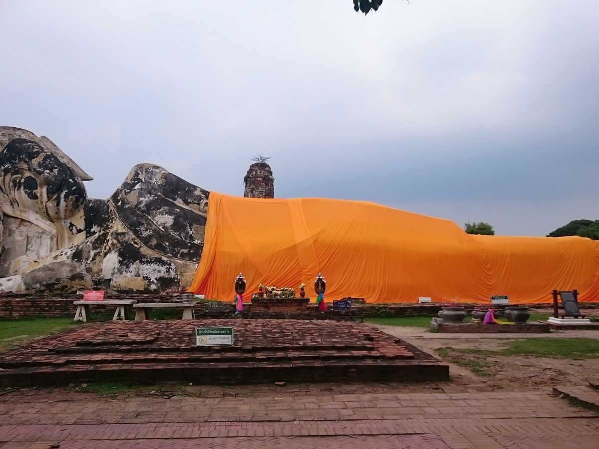 アユタヤでバスに乗って降りて寝ている像を見たり、木の間に挟まっている像を見たりしました。とても楽しかったです。