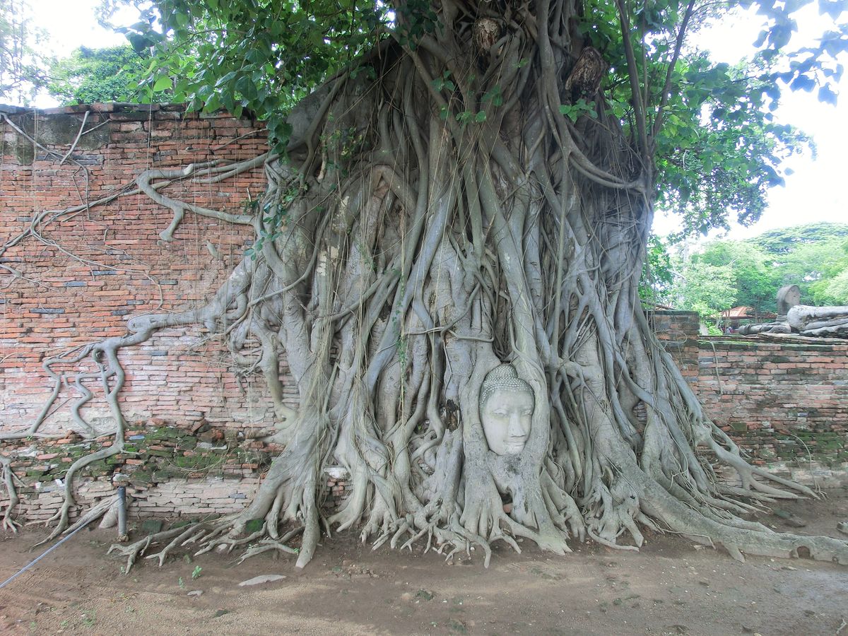 バンコクで見る寺院よりも素朴で、周りの雰囲気も落ち着いている分神聖な感じがしました。特にお目当ての仏頭が木の根に包まれている光景を見た時にはちょっと神秘的でしたね。