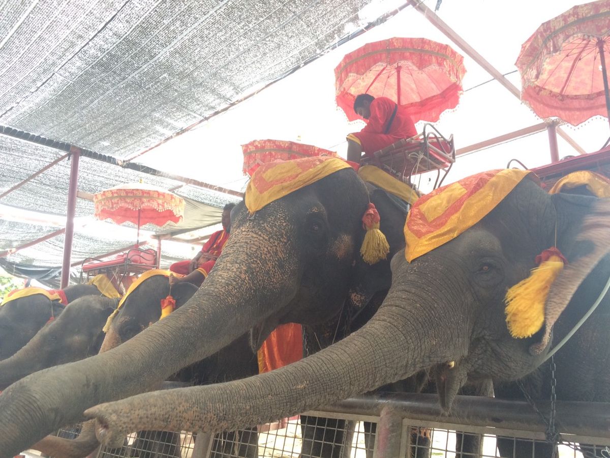 内容も充実してました。マーケットにアユタヤに、暑い中、自分たちだけで回るのは無理だったと思います。どちらも面白いので、オススメです。マーケットは手漕ぎのボートに200バーツで乗れますが、面白いのでぜひ乗ってみてください。象のエサやりも可愛いのでオススメします。50バーツです。