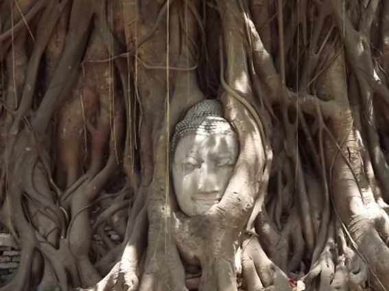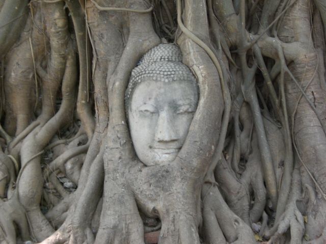 観光雑誌にのっている木の根におおわれた頭だけの仏像もみることができました。