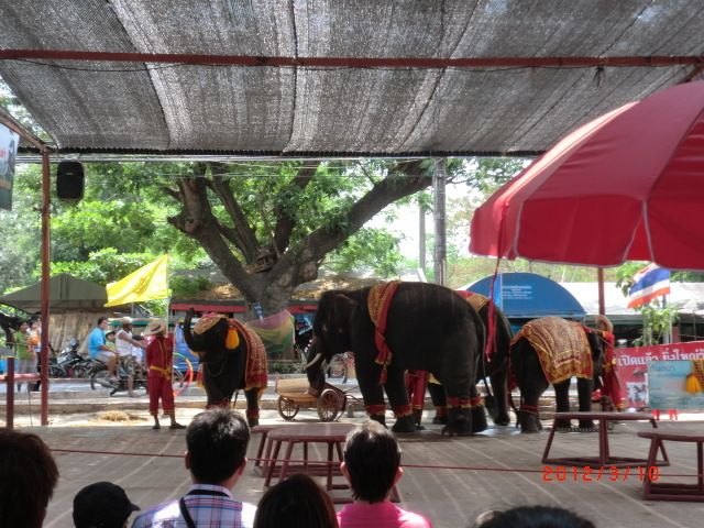 アユタヤも良かったけど、オマケでついてた象乗り体験が一番おもしろかった!添乗員さんがバナナを買ってくれて象にエサまであげれて、象乗りは10分位だけど、充分だった気がします。写真もいっぱい撮ってくれますが、ここでもチップを要求。タイは20バーツが沢山いります。