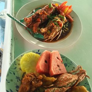 船上では、水やコーラなどのソフトドリンクは飲み放題で、昼食では船上で作りたてのフライ系の多いご飯が出ました。バイキング形式でしたが味も量もとっても満足できました。