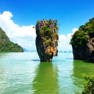 静かなグリーンの海面から161もの小島がそそり立つパンガー湾海洋国立公園は、プーケットのすぐ北側に位置し、その風光明媚な絶景は世界中の旅行客を魅了しています。中でもピンカン島にある、大きなくさびを海に打ち込んだような形の岩は映画『007・黄金銃を持つ男』に登場し、一躍有名となりました。「ジェームスボンド岩」と呼ばれ人気です。 一番の楽しみは、カヌー(シーカヤック)で探検するアクティビティ。洞窟くぐりや鍾乳洞など、カヌーでしか行けない場所へ向かいます。天井ぎりぎりの洞窟を抜けた先にあるラグーンは、鳥のさえずりしか聞こえない静けさ。壮大な別世界をご覧いただけるはずです。 パンガー湾への行き方は、プーケットからが行きやすく、所要時間はバスで約2時間半。ホテルからの送迎が付いたオプショナルツアーがおすすめです。ツアーには、朝日鑑賞や象乗りが付いたツアーや、速いスピードボートで島に向かうツアー、子供にも人気の動物ショーとセットになったツアー、日本語・英語ガイド付き観光ツアーなど、お好みに合わせたツアーをご用意。雨季(5~10月)でも楽しめるアクティビティです。予約はこちらから。