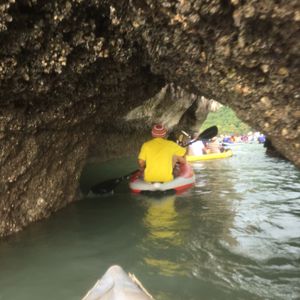 カヌーで、大自然の中を見てまわれて、感動しました!カヌーで、洞窟の中に入っていったりアドベンチャー感が強く楽しかったです。人数に対して、船も大きく他のツアーの船に比べると綺麗で、快適に過ごせました!カヌーは、現地のガイドさんが漕いでくれるので、ゆったりするだけ。ガイドさんたちのリーダーシップ、サービス精神がものすごい!ドリンク配ったり、写真をたくさん撮ってくれたりなど、とても優しかったです。昼食は、船上とのことだったので、ゆっくりできるかなと思ってましたが、船がきれいで広々してるので、美味しくいただけました!せかせかしてなく、のんびりできるアドベンチャーツアーでした!