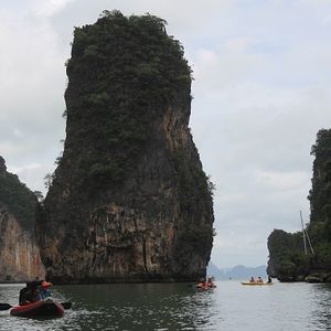 静かなグリーンの海面から161もの小島がそそり立つパンガー湾海洋国立公園は、プーケットのすぐ北側に位置し、その風光明媚な絶景は世界中の旅行客を魅了しています。中でもピンカン島にある、大きなくさびを海に打ち込んだような形の岩は映画『007・黄金銃を持つ男』に登場し、一躍有名となりました。「ジェームスボンド岩」と呼ばれ人気です。 一番の楽しみは、カヌー(シーカヤック)で探検するアクティビティ。洞窟くぐりや鍾乳洞など、カヌーでしか行けない場所へ向かいます。天井ぎりぎりの洞窟を抜けた先にあるラグーンは、鳥のさえずりしか聞こえない静けさ。壮大な別世界をご覧いただけるはずです。 パンガー湾への行き方は、プーケットからが行きやすく、所要時間はバスで約2時間半。ホテルからの送迎が付いたオプショナルツアーがおすすめです。ツアーには、朝日鑑賞や象乗りが付いたツアーや、速いスピードボートで島に向かうツアー、子供にも人気の動物ショーとセットになったツアー、日本語・英語ガイド付き観光ツアーなど、お好みに合わせたツアーをご用意。雨季(5~10月)でも楽しめるアクティビティです。予約はこちらから。