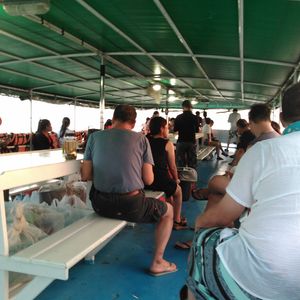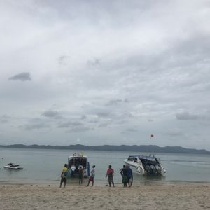 送迎車が来て、着いた待合室(?)には中国人客がぞろぞろ現れました。ツアー客の9割が中国人でした。不安にかられながらも、若干古びた船に乗船して出航。結構な風で波も強かったですが、シーカヌーは現地の陽気な兄ちゃんが操縦してくれて快適。島2つに上陸して、紅の豚の隠れ家みたいな景色に感動。船に戻るとディナーの準備がされてました。島に上陸すると欧米の観光客も大勢いました。
