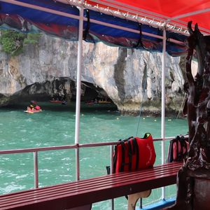 その後、スピードボートに20人弱程度が乗り込み出航しました。スピードボートは風を感じることが出来、非常に爽快でした。ツアー中は英語のみでしたが、英語が達者ではない私達でも聞き取りやすい英語で話してくださいました。また、ツアースタッフも優しく親切で、写真もたくさん撮って頂いたりと、良くして頂きました。シーカヤックや洞窟探検もスタッフが付いていて、特に危険もなく安全なツアーでした。