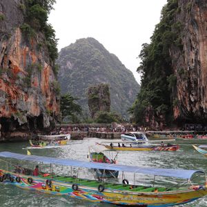 静かなグリーンの海面から161もの小島がそそり立つパンガー湾海洋国立公園は、プーケットのすぐ北側に位置し、その風光明媚な絶景は世界中の旅行客を魅了しています。中でもピンカン島にある、大きなくさびを海に打ち込んだような形の岩は映画『007・黄金銃を持つ男』に登場し、一躍有名となりました。「ジェームスボンド岩」と呼ばれ人気です。 一番の楽しみは、カヌー(シーカヤック)で探検するアクティビティ。洞窟くぐりや鍾乳洞など、カヌーでしか行けない場所へ向かいます。天井ぎりぎりの洞窟を抜けた先にあるラグーンは、鳥のさえずりしか聞こえない静けさ。壮大な別世界をご覧いただけるはずです。 パンガー湾への行き方は、プーケットからが行きやすく、所要時間はバスで約2時間半。ホテルからの送迎が付いたオプショナルツアーがおすすめです。ツアーには、朝日鑑賞や象乗りが付いたツアーや、速いスピードボートで島に向かうツアー、子供にも人気の動物ショーとセットになったツアー、日本語・英語ガイド付き観光ツアーなど、お好みに合わせたツアーをご用意。雨季(5~10月)でも楽しめるアクティビティです。予約はこちらから。