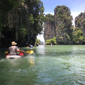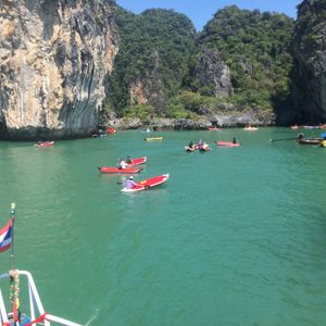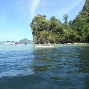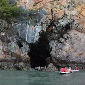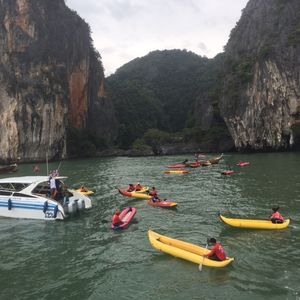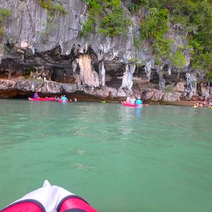 プーケットのダウンタウンから、相当北東へ移動します。早朝のピックアップから道路が混んでいたらば、2時間近く出発する港に行くまでかかることも覚悟してください。船も大きな船でスピードは遅いです。アクティビティについては、洞窟探索などワクワクするポイントもありますが、全体的な印象は、同じシーカヤックであればパラオの方が良かったと感じました。