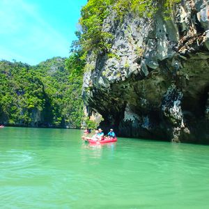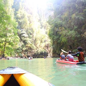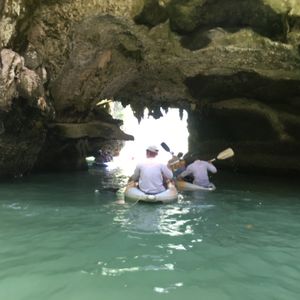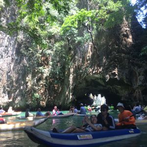 ホテルまで迎えに来ていただき、パトンビーチ付近のホテルからは2時間強ほどの港までいきました。船が出発する港には何もなく、船のトイレも綺麗ではないので最初は少し不安でした。でもカヌー体験が始まると、来てよかった!!とすぐ思えました☆カヌーを漕いでくれる現地の方が、2人に1人つき見所を教えてくれます!洞窟のすごく狭い隙間を通って見える光や、緑がすごく綺麗で非日常的な体験ができました。鍾乳洞もキラキラしていて綺麗でした!ただ、船からカヌーに乗り換え、昼食も船の上なので酔いやすい方は酔い止めを、飲むことをお勧 めします!楽しく過ごすことができました!