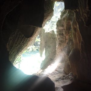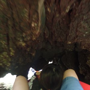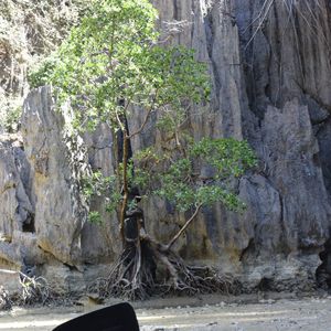 次に立寄ったところではカヌーに乗ってマングローブの中を冒険!漕ぎ手の方がこいでくれるので、楽です。その方がガイドをしてくれるのですが、写真もポイントでとってくれるのでありがたいです。侵食された島(岩)の中を進んでいくと、顔の近くまで迫るくらいで見られます。暗い中を進んでいくこともありますのでドキドキでした。