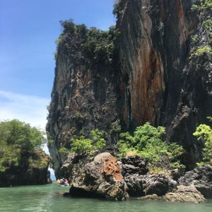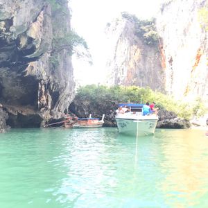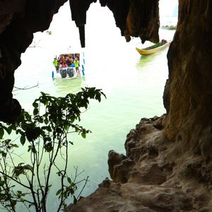 2階建ての船に乗って3つほど島を巡ります。最初の島は、ジェームスボンド島(岩)がすぐ近くに見えるところで船から降りて散策。自由に40分ほど歩き回りましたが、鍾乳洞が迫力があって圧倒されました。午前の時間帯でしたが観光客が多かったです。