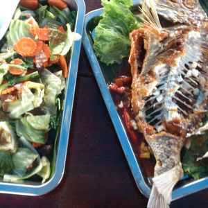 その後昼ご飯。観光客向けに考えられたメニューになっていると思います。米、魚、揚げ物、スパゲッティー、肉料理などどれかは必ず口に合うと思います。バイキング形式なのでおなかいっぱい食べられます。ちなみに乗船中は水、コーラ、お茶飲み放題でした。