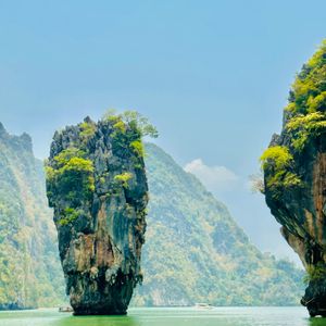 静かなグリーンの海面から161もの小島がそそり立つパンガー湾海洋国立公園は、プーケットのすぐ北側に位置し、その風光明媚な絶景は世界中の旅行客を魅了しています。中でもピンカン島にある、大きなくさびを海に打ち込んだような形の岩は映画『007・黄金銃を持つ男』に登場し、一躍有名となりました。「ジェームスボンド岩」と呼ばれ人気です。 一番の楽しみは、カヌー(シーカヤック)で探検するアクティビティ。洞窟くぐりや鍾乳洞など、カヌーでしか行けない場所へ向かいます。天井ぎりぎりの洞窟を抜けた先にあるラグーンは、鳥のさえずりしか聞こえない静けさ。壮大な別世界をご覧いただけるはずです。 パンガー湾への行き方は、プーケットからが行きやすく、所要時間はバスで約2時間半。ホテルからの送迎が付いたオプショナルツアーがおすすめです。ツアーには、朝日鑑賞や象乗りが付いたツアーや、速いスピードボートで島に向かうツアー、子供にも人気の動物ショーとセットになったツアー、日本語・英語ガイド付き観光ツアーなど、お好みに合わせたツアーをご用意。雨季(5~10月)でも楽しめるアクティビティです。予約はこちらから。