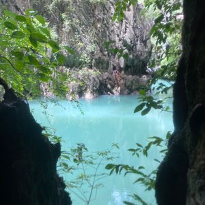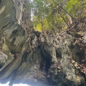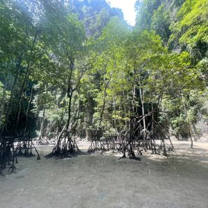 雨の中、洞窟を抜けた先に静かさが広がっており、岩とマングローブに囲まれて神秘的な雰囲気でした。