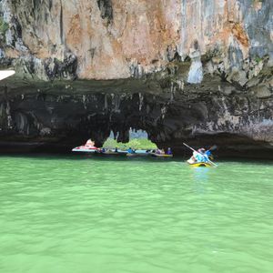 家族一同で参加しました。自分で漕ぐタイプのシーカヤックだったため、高齢の両親も乗っているだけなら楽ちんという事で参加。洞窟探索の舵取りもお任せでガイドしてくれ楽しかったです。ジェームズボンド島への立ち寄り観光時もスタッフが写真を撮ってくれたりと英語ツアーでしたが、クルーの気配りも心地良かったです。船上で食したランチも美味しいし、最後は飛び込んで泳ぐ時間も設けられ、時間の長さやサービスも全て程良い印象でした。