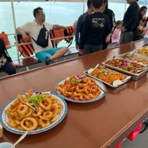 移動の船ではお昼ご飯以外にも飲み物やフルーツ、お菓子の提供をしており、脱水などの心配なくご参加いただけるように心がけています。お客様が快適に過ごしていただけたこと、安心いたしました。