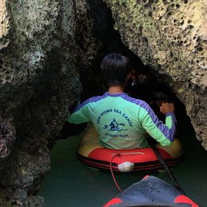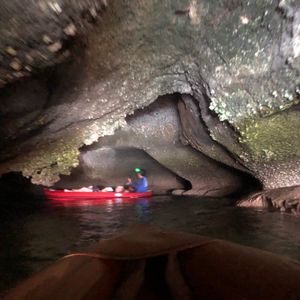 カヌーで入る洞窟は、満潮だった事もありスリル満点!体を倒して入って行った先に広がるラグーンは感動でした。狭い鍾乳洞の中に入るのは難しいと思いますが、カヌーガイドの技術は高く、安心して体験出来ました。写真スポット各所で案内、撮影を提案してくれ、サービスも良かったです。