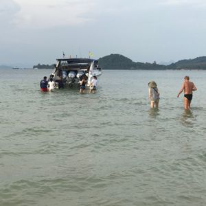 朝のピックアップは予定時刻より少し前に到着してピックアップされました。混載で、他に2組、海外の方と一緒にプーケットマリーナまで移動しました。マリーナ到着後は、日本語ガイド「ナオト」さんが丁寧に説明等して頂き、他の日本人参加者を待ち、集合次第、日本人だけ先にスピードボートに乗船させてくれて、いい席をあてがってくれます。スピードボートは思ったよりも全然衝撃もなく、しかもスピード感はあってアトラクション感覚で楽しかったです!
