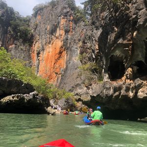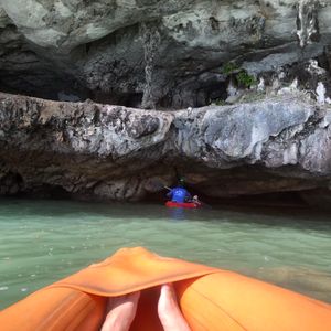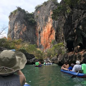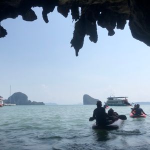 ホテルからロイヤルプーケットマリナー港到着後、スピードボートでパンガー湾へ約30分で移動し、カヌーをやりました。自分達で漕ぐ必要もなく現地のガイドさんが漕いでくれいろいろ説明してくれるのでジョークも踏まえとても楽しい時間を過ごせました。洞窟体験では普段行かないような場所に行け貴重な体験が出来ました。