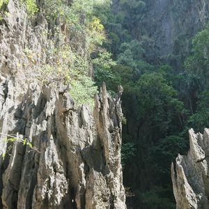 また船に乗って5分。第2島。ここは船から裸足で直接カヌーに乗り換え、20分ほど洞窟めぐりや奇岩を見学する。カヌーの漕ぎ手が動物に似ている岩などを教えてくれるが、そうは見えない岩が多い。