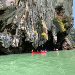 家族三人で参加さしました。大人三人時間通りのホテルお迎えでハーバーへ、以前ピピ島観光へ行った時利用した懐かしいハーバーでした。待合場所では、美味しいドリンクバーとおやつを頂き、数名の日本人と一緒でホッ!日本語での説明を聞き、トイレを済ませ出発!鍾乳洞洞窟探検〜シーカヌーでは漕ぎ手の方が色々スポットに上陸させてくれたり、写真も!すれ違うカヌー同士挨拶を交わし、ちょっとした国際交流。〜ジェームスボンド島では、斜めに切り立った岩、タイの聖地だそう。〜水上生活の島では、美味しいランチバイキング。〜綺麗な砂浜の島ではマリンアクティビティ!