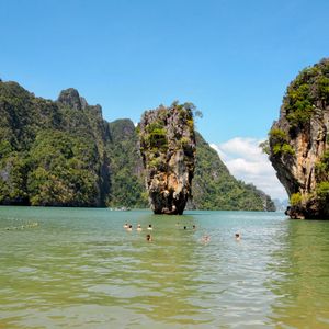 静かなグリーンの海面から161もの小島がそそり立つパンガー湾海洋国立公園は、プーケットのすぐ北側に位置し、その風光明媚な絶景は世界中の旅行客を魅了しています。中でもピンカン島にある、大きなくさびを海に打ち込んだような形の岩は映画『007・黄金銃を持つ男』に登場し、一躍有名となりました。「ジェームスボンド岩」と呼ばれ人気です。 一番の楽しみは、カヌー(シーカヤック)で探検するアクティビティ。洞窟くぐりや鍾乳洞など、カヌーでしか行けない場所へ向かいます。天井ぎりぎりの洞窟を抜けた先にあるラグーンは、鳥のさえずりしか聞こえない静けさ。壮大な別世界をご覧いただけるはずです。 パンガー湾への行き方は、プーケットからが行きやすく、所要時間はバスで約2時間半。ホテルからの送迎が付いたオプショナルツアーがおすすめです。ツアーには、朝日鑑賞や象乗りが付いたツアーや、速いスピードボートで島に向かうツアー、子供にも人気の動物ショーとセットになったツアー、日本語・英語ガイド付き観光ツアーなど、お好みに合わせたツアーをご用意。雨季(5~10月)でも楽しめるアクティビティです。予約はこちらから。