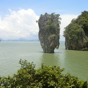 静かなグリーンの海面から161もの小島がそそり立つパンガー湾海洋国立公園は、プーケットのすぐ北側に位置し、その風光明媚な絶景は世界中の旅行客を魅了しています。中でもピンカン島にある、大きなくさびを海に打ち込んだような形の岩は映画『007・黄金銃を持つ男』に登場し、一躍有名となりました。「ジェームスボンド岩」と呼ばれ人気です。 一番の楽しみは、カヌー(シーカヤック)で探検するアクティビティ。洞窟くぐりや鍾乳洞など、カヌーでしか行けない場所へ向かいます。天井ぎりぎりの洞窟を抜けた先にあるラグーンは、鳥のさえずりしか聞こえない静けさ。壮大な別世界をご覧いただけるはずです。 パンガー湾への行き方は、プーケットからが行きやすく、所要時間はバスで約2時間半。ホテルからの送迎が付いたオプショナルツアーがおすすめです。ツアーには、朝日鑑賞や象乗りが付いたツアーや、速いスピードボートで島に向かうツアー、子供にも人気の動物ショーとセットになったツアー、日本語・英語ガイド付き観光ツアーなど、お好みに合わせたツアーをご用意。雨季(5~10月)でも楽しめるアクティビティです。予約はこちらから。